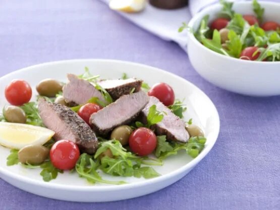 Этим лёгким диетическим салатом можно позавтракать, получив на весь день заряд энергии и изрядную дозу витаминов. Ингредиенты: Способ приготовления: Достаньте косулятину, оставьте отдохнуть на 10 минут, потом нарежьте поперёк и немного наискосок. Подавайте со свежей рукколой, черри, оливками и дольками лимона — досолив и поперчив блюдо по вкусу. Приятного аппетита! Заказать с доставкой мясо косули а также мясо другого охотничьего зверя, дичь и дикую рыбу вы можете на нашем сайте dikoed.ru Дикоед - самая натуральная еда!