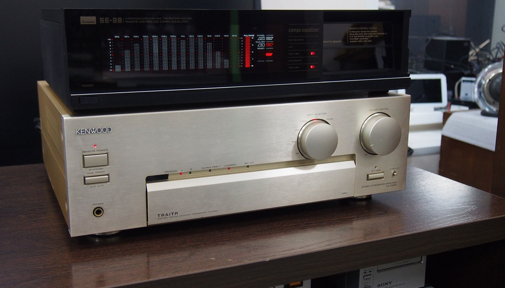 Модель усилителя Kenwood KA-7090R начала выпускаться с 1996 года. И хотя модель не новая, но к винтажной технике она пока еще не относится. При цене примерно в 400-500 долларов по тому курсу - это был в прямом смысле топ от компании Kenwood. Усилителей лучше и дороже, чем 7090R, компания тогда не выпускала. Уже этот факт является довольно интригующим, так как означает, что у этой модели не было внутренней конкуренции, а значит у Kenwood не было мотивов приберечь классные решения для более дорогих моделей. Компоновка Основная фишка 7090R, упор на которую делали маркетологи - это особенные транзисторы оригинальной разработки с кодовым названием TRAITR, что в вольном переводе расшифровывается как мгновенно реагирующие на температуру усовершенствованные транзисторы. Их особенность в том, что в каждый транзистор интегрирован модуль термостабилизации, что позволяет с огромной скоростью реагировать на изменение температуры, благодаря чему, рабочие характеристики не начинают плавать. Если по