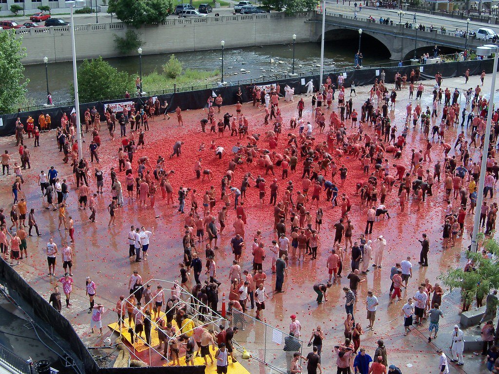 1)Битва томатами Нам всем нравится играть в снежки зимой. Но, что если мы скажем вам, что в Испании людям нравится использовать помидоры в качестве оружия! Да-да, Испанцы не просто любят, они обожают кидаться помидорами. Дело в том, что это такой праздник "Ла Томатина" (La Tomatina) - самая большая битва томатами. В этот период окло 150 тонн томатов оказывается на улицах города. Люди купаются в томатном соке, кидаются томатами. И чтобы подчеркнуть красочность праздника, люди надевают белую одежду. Данное мероприятие происходит в последнюю среду августа. 2) Не зря говорят, что осколки приносят удачу! Очень интересный свадебный обычай в Германии: за ночь до свадьбы их семьи и близкие друзья встречаются, чтобы разбить такие вещи, как столовые приборы и вазы, посуду, плитку, унитазы, раковины, все, что угодно, но не бокалы. Как только все предметы разбиты, пары должны убирать разбитые вещи. Эта традиция показывает супругам, что очень важно единство и усердный труд, для того, чтобы их бра