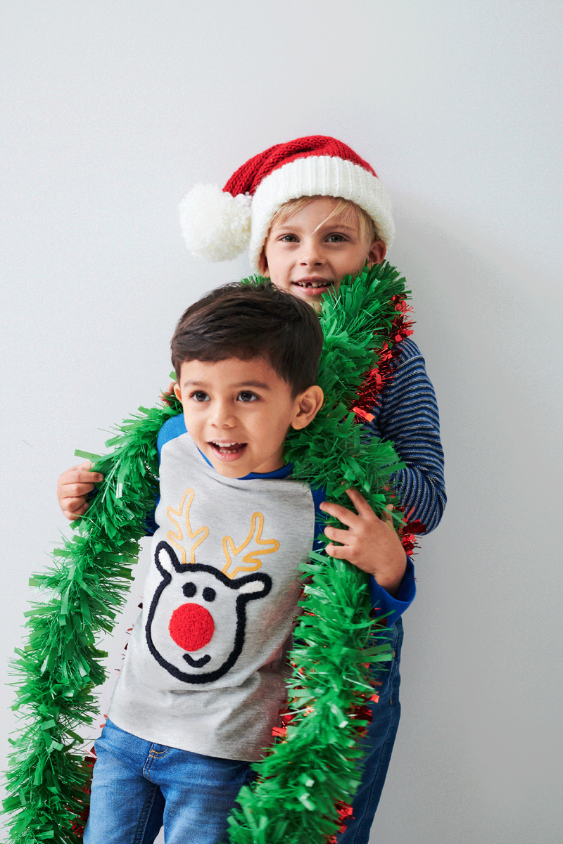 Если же ребенок отказывается надевать карнавальный костюм, но почувствовать настроение праздника хочется, предложите ему яркий тематический свитер с Сантой или футболку с Рудольфом на груди.