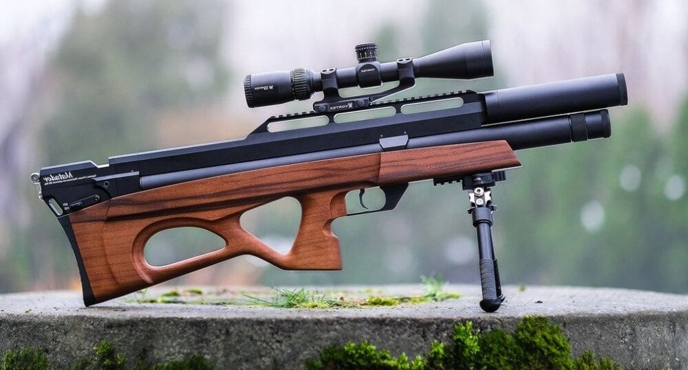 Данная модель была разработана Эдуардом Гафаровым в 2002 году. Изначально изделие было создано в компоновке буллпап ( bull-pup ). Основная идея такого способа оформления – максимальное сокращение габаритов за счет расположения курка перед ударным механизмом, а не позади, как в большинстве моделей. ЭДган Матадор – чуть ли не единственные pcp винтовки, изготовляемые исключительно на территории РФ.