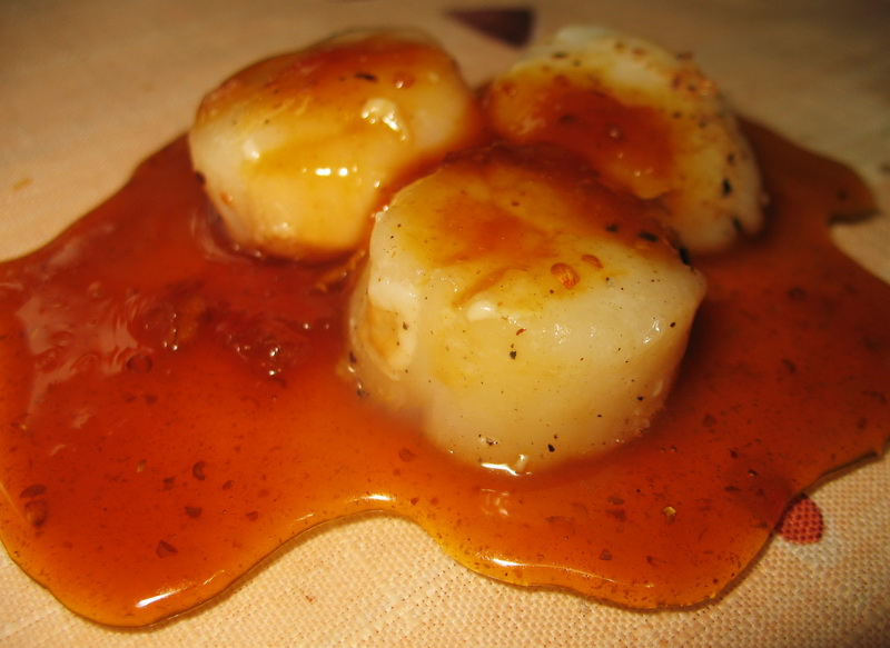 3. Выложить гребешки на тарелку, полить сверху соусом. Подавать горячими.