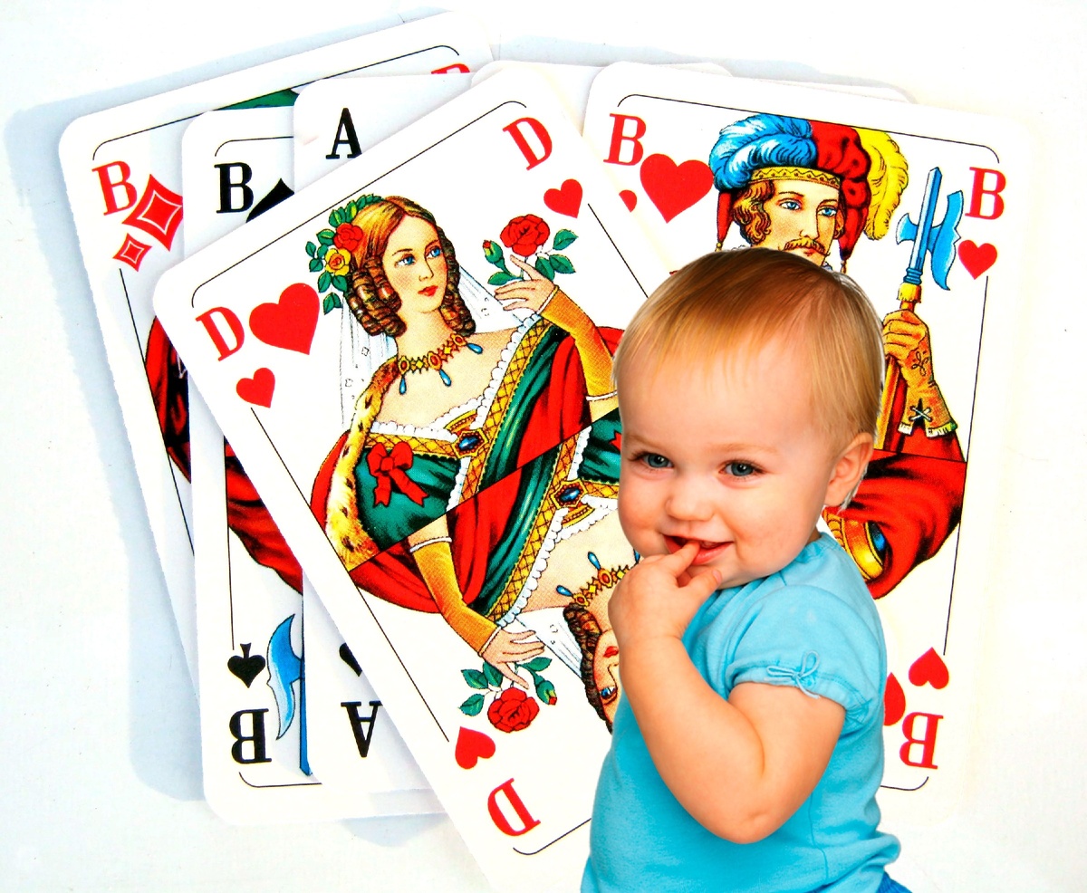 В последнее время стал забываться такой вариант досуга как обычные игральные карты. Появилось множество других вариантов разнообразия досуга. И карты отошли на второй....или даже ...дцатый план. А ведь у карт не только огромная возможность в организации взрослого досуга, но и также недооцененный потенциал развития "думалок" у наших малышей. Я со своей дочерью стал играть в карты, когда ей было 3,5-4 года. Сначала можно поразглядывать картинки, объяснить их значение, а потом приступать к игре в карты :) Игры конечно специальные детские, направленные на развитие логики, внимания, скорости реакции. Самой первой игрой стала наша вариация игры "101". Мы же ее обозвали "дурак", так как это название и легко запоминается и значительно мотивирует ребенка к победе (чтобы не стать "дураком") Для раздачи используется колода в 36 карт. На первых этапах можно использовать только карты с картинками от валета до туза. Колода тщательно тасуется, затем сдающий игрок (как правило это ребенок) ее сни