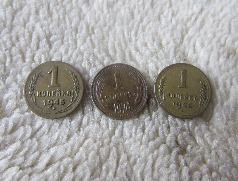 Купил недавно банку с примерно пятью килограммами монет образца 1961 года. Отдал за эти монеты 1000 рублей. Получается, что килограмм 200 рублей. По факту, это дорого, но монеты точно были не перебраны по годам, так как продавал их человек, очень далекий от современных технологий, с помощью которых можно было бы заглянуть в каталоги. Основная часть монеты были "желтые". Наверное, когда началась чехарда с ценами в позднем СССР, то монетки малого номинала просто бросали в банку. А может быть кто-то их копил. Раритетов я не нашел. Не было даже монет, которые по ценникам стоили дороже бы 200 рублей. Но зато нашел вот такие три интересные и красивые монетки: Копейка 1945 года, копейка 1946 года и болгарская стотинка 1974 года. Откуда советские копейки взялись среди "поздних" монет СССР это понятно. В ходе реформы 1961 года, монеты номиналом 1, 2 и 3 копейки оставались законным средством платежа (об этом даже фильма сняли - "Менялы"). Да я и сам помню, что в 80-е годы совершенно было неуди