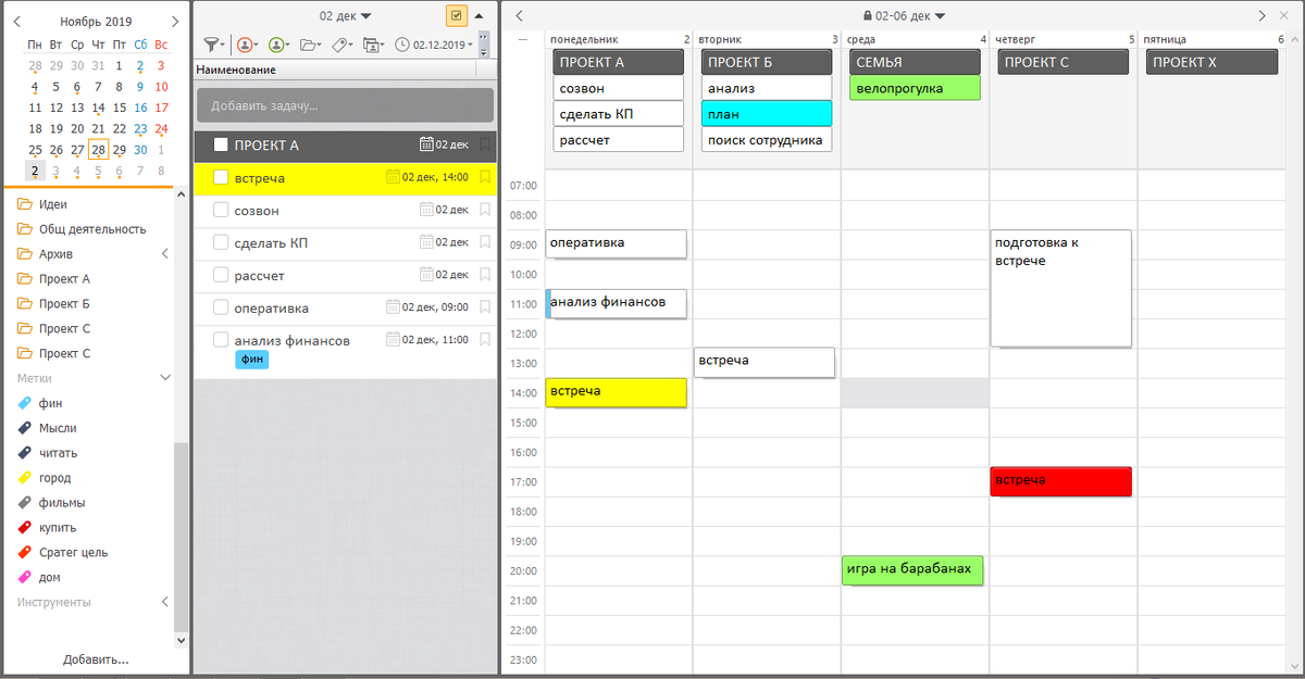 Краткий пост на тему как можно планировать неделю в лидертаск если много направлений работы. У меня несколько бизнес проектов, и очень часто и остро встает вопрос фокусировки и наглядности в какой день что нужно не упустить. Последние годы я вижу свою неделю так. Рассмотрим по блокам Список дней переходим к следующему блоку Список задач на сегодня Самый левый столбец В данном столбце у нас основная навигация P.S. Стоит отметить, что интерфейс программы настраивается гибко, и это лишь одна из вариаций. Кому то подойдет другой вариант :) Про каталогизацию и фильтрацию возможно я напишу в другой статье.