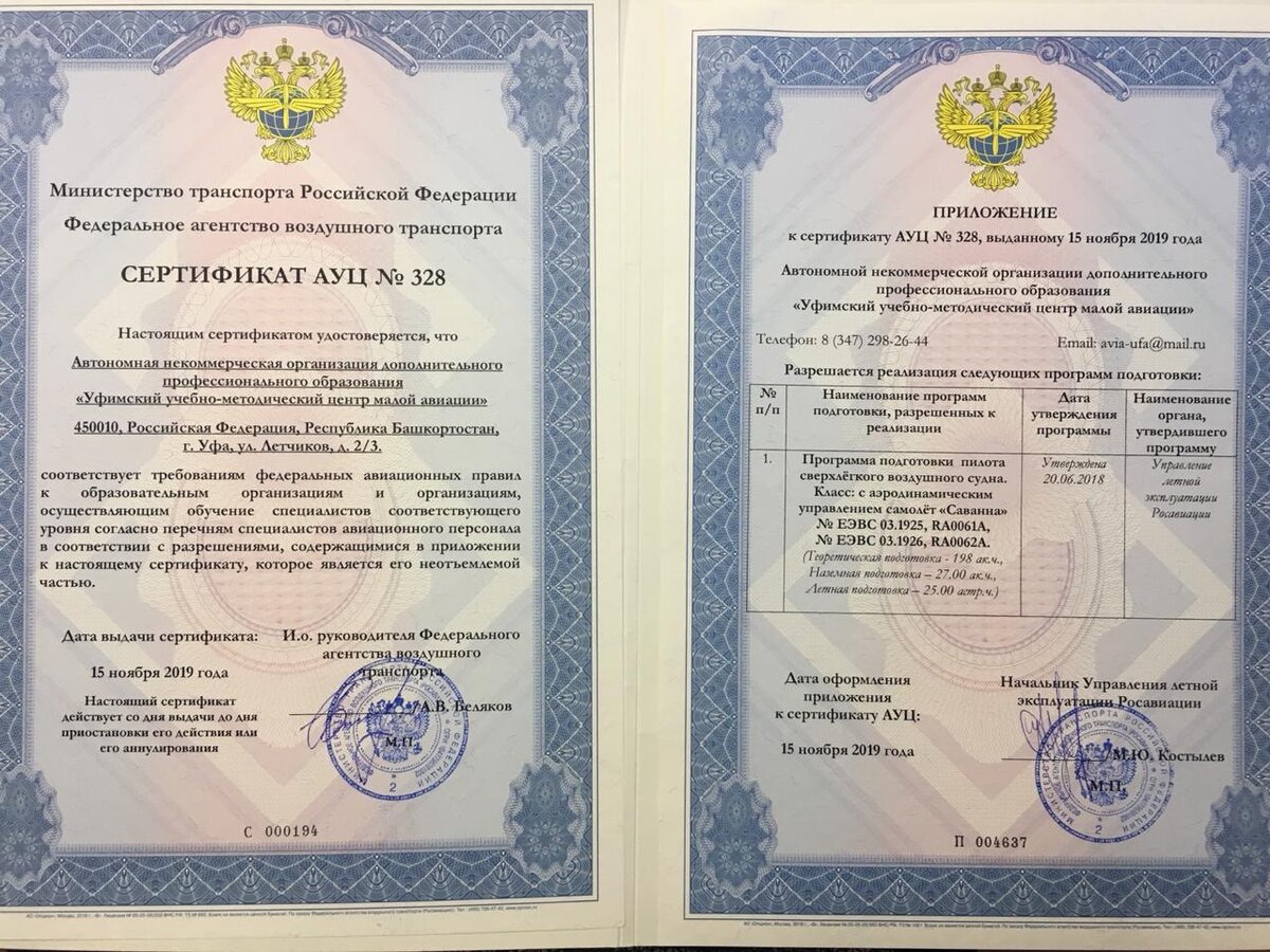 У меня для вас хорошие новости. Это наконец-то случилось. Команде аэродрома "Первушино" после долгих трех лет ожидания, выполнения всевозможных новых требований Росавиации и бюрократических проволочек был выдан сертификат авиационного учебного центра на подготовку пилотов самолётов (сверхлёгких воздушных судов, взлётная масса до 495 кг.) Этими документами предусмотрена: теоретическая подготовка в объёме 198 академических часов, наземная подготовка в объёме 27 академических часов, а также лётная подготовка в объёме 25 астрономических часов на сверхлёгких самолётах «Саванна». При успешном окончании теоретического и практического курса подготовки, сдачей внутренних промежуточных зачётов и экзаменов, а также проверки навыков пилотирования пилотом-инструктором и пилотом-экзаменатором, Вы допускаетесь к сдаче финального теста в Межрегиональном территориальном управлении Росавиации в любом удобном для Вас регионе Российской Федерации. Итоговым документом станет «Свидетельство пилота свер