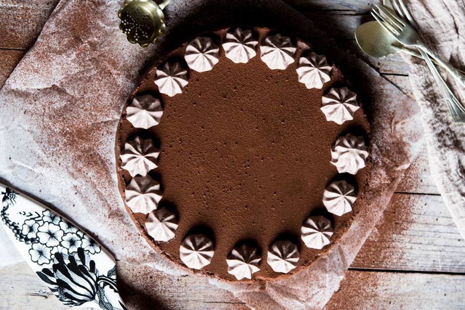 Шоколадный чизкейк не нужно выпекать в духовке. Вариантов оформления может быть много: обычная посыпка из какао и тертого шоколада, вбитые сливки или кондитерские украшения-бусинки золотистого и серебристого цвета. Необходимые ингредиенты: Для украшения: Пошаговый рецепт: Перед подачей к столу нужно будет украсить торт. Для этого взбейте рикотту с сахаром и какао. Покройте застывший слой крема с помощью кондитерского шприца или мешочка. Посыпьте тертым шоколадом, какао-порошком или посыпкой.