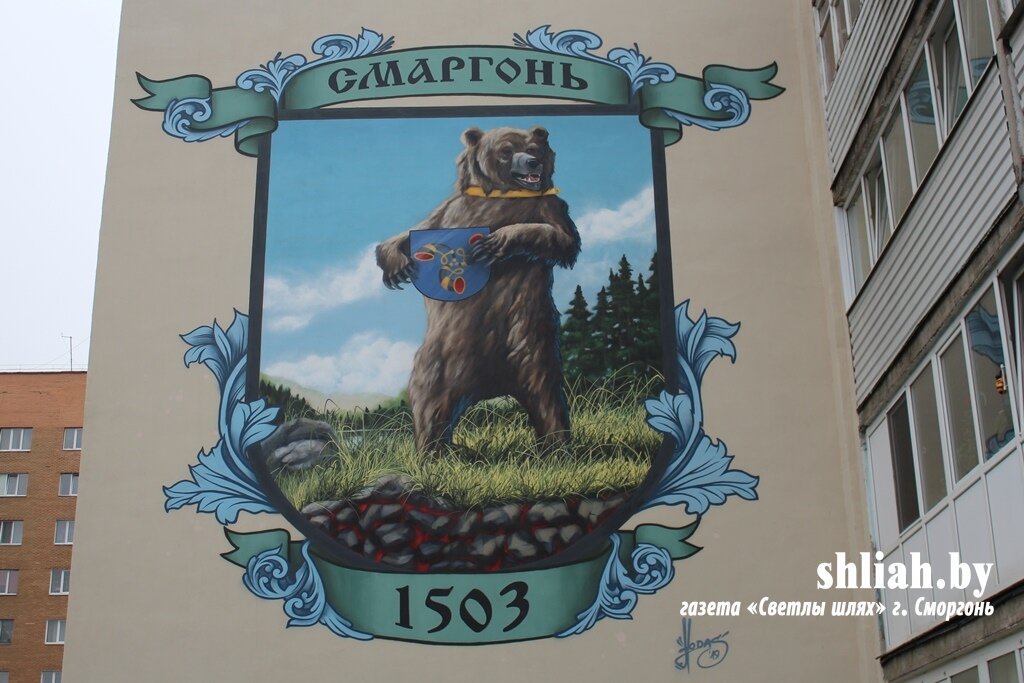 Герб Сморгони в оригинальном исполнении в начале этой недели появился на стене дома по Советской, 29А.