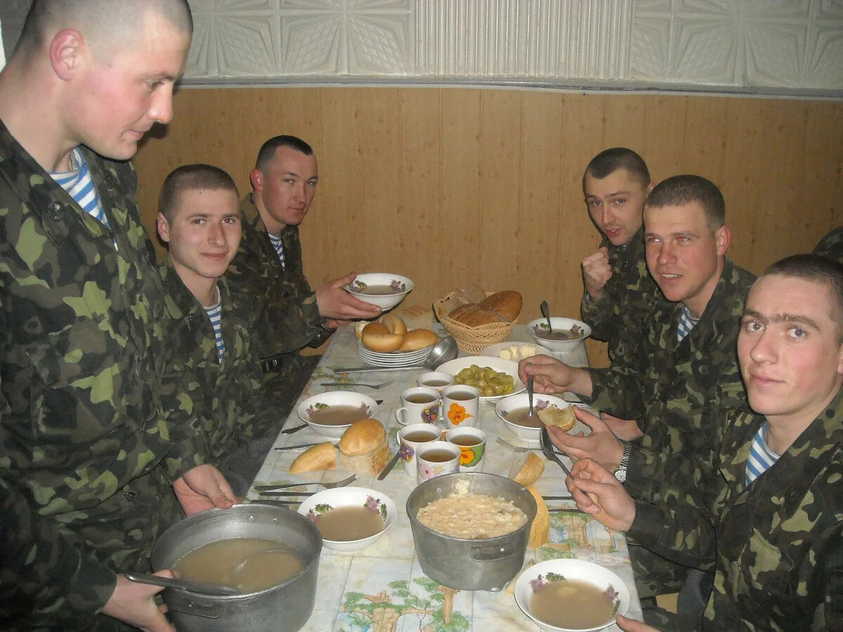 Служил в Краснодаре СКВО - затем командировки Закавказье. 1986-1988 г. В части кормили плохо: рацион убогий и ничего кроме воскресного меню хорошего не было, давали яйца и гречку, какао было, фрукты в компотах попадались, мяса нет. В учебке похудел на 12 кг - вес до призыва 61 кг. В командировке первое время тоже кормили не ахти - каптёр с дедушками всё делили на своих, остальным давали всё, что осталось. Но в принципе нормально. По факту питания: списывались продукты постоянно. Многого и не было вовсе - яйца и гречка, сахар и мясо. Комбижир и масло растительное было, хлеб, макароны, консервы рыбные. Но даже сливочное масло деды ели вдоволь, им положено. Что касается овощей: картошка гнилая, свекла, капуста, морковь и лук. Яблок и помидор, огурцов не видел всё время. Так, что учебка и командировка были не сытными. **
