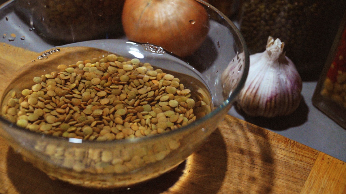 Доброго времени суток! Мало кто знает, но чечевица - универсальная крупа. Она не только очень сытная и вкусная, но и очень полезная для нашего организма! Её нужно включать в рацион не меньше раза в неделю хотя бы из-за того, что она богата клетчаткой, которая необходима для хорошего пищеварения, повышения иммунитета и гемоглобина! А чтобы её было интереснее кушать, я предлагаю Вам приготовить наивкуснейший чечевичный супчик с овощами, который полюбит даже самый капризный ребёнок! Время приготовления - 40 минут. Для сытного чечевичного супчика Вам понадобится: Ингредиенты для основного блюда: ◾ Чечевица 200 гр. ◾ Куриное мясо 500 гр. ◾ Лук 1 шт. ◾ Морковь 1 шт ◾ Болгарский перец 1 шт. ◾ Картофель 3 шт. ◾ Томат большой 1 шт. ◾ Томатная паста 1,5 ст.л. ◾ Растительное масло для жарки. ◾ Чеснок 2 зубчика. ◾ Соль 2 ст.л. ◾ Специи по вкусу. ◾ Зелень. Готовим: 1. Замочить чечевицу; 2. Мясо хорошо промыть и нарезать кубиками; 3. Поставить мясо вариться. После того, как вода закипит, нужно убави