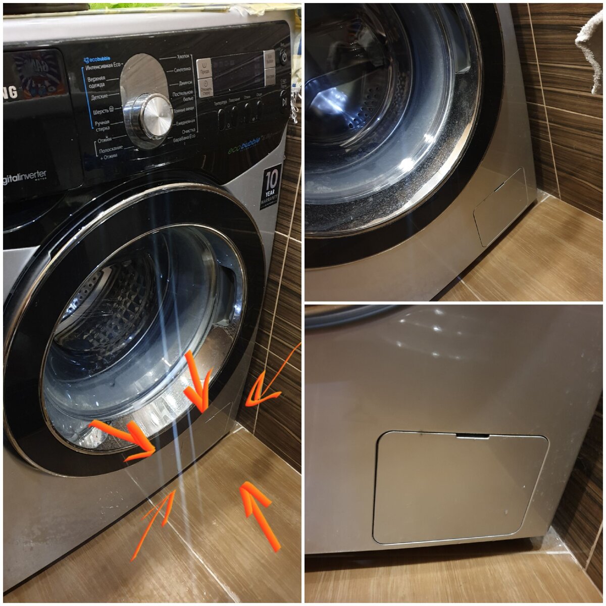 В стиральной машинке есть так называемый отстойник. Но мало кто об этом задумывается и помнит. А зря. И вот что бывает - пример стиралки с боковой загрузкой. В стиральных машинках с боковой загрузкой отстойник и заглушка к нему обычно располагаются в этом месте. Аккуратно открываем заглушку и готовим низкий лоток, либо тряпку. Хотя тряпка понадобится 100%. Если вашей стиралке больше 3х лет, и Вы только сейчас узнали об этой штуковине, знайте - вонь будет жуткая. Открыв заглушку видим пробку. Выкручиваем пробку, не забыв при этом подстелить тряпку и поставить лоток. Готовьтесь к неприятному запаху и остаткам воды. Как же тут воняет... и неудивительно. Но без этого никак. Иначе все это попадет в насос и тот выйдет из строя. Если не чистить данный отстойник, то постоянно находясь в воде, все что налипает, начинает гнить, вода начинает тухнуть и т.д... В дальнейшем после стирки белье все равно может иметь легкий и едва уловимый аромат тухлой воды (особенно