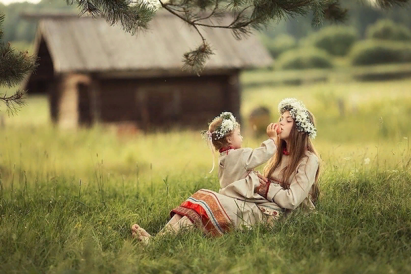 Красна девица, русая коса, венок из полевых цветов, деревенская тропинка и звонкая песня из её уст… Солнечный день так благоприятен для таких прогулок… Где-то неподалёку детишки играют. Возможно придумывают БИРЮЛЬКИ. Народ парится в бане и отмечает очередной солнечный праздник
