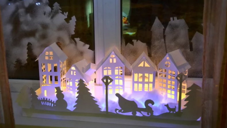 Друзья, вот к нам и приближается самый любимый, самый долгожданный и волшебник праздник зимы – Новый Год и Рождество. Хочется сказки и чуда. Поэтому предлагаю Вам интересный способ декорировать окно к Новому Году. Особенно актуальная моя идея придется для тех, у кого есть маленькие дети, потому что на ваших окнах оживет целый сказочный городок. Все зависит от Вашей фантазии.