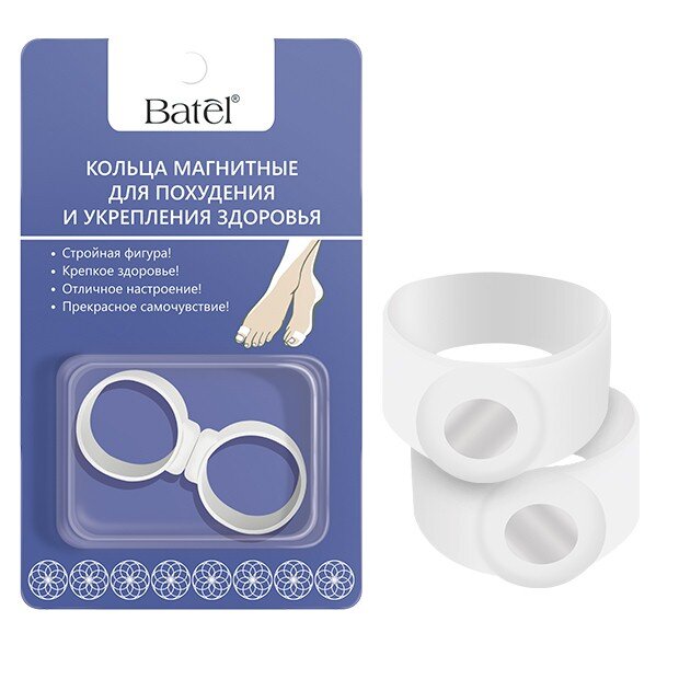 - Стройная фигура! - Крепкое здоровье! - Отличное настроение! - Прекрасное самочувствие! Воздействуя на биоактивные точки, магниты активизируют обменные процессы, способствуют снижению аппетита, нормализации работы внутренних органов, тонизируют, дарят прилив бодрости и энергии. Отличная профилактика бессонницы, стрессов и депрессии. Применение Надеть кольца на большие пальцы ног таким образом, чтобы магнит зафиксировался в нижней части пальца посередине, носить в течение 2-3 часов ежедневно, постепенно увеличивая время использования до 7-12 часов. Рекомендуется промывать кольца прохладной водой после каждого использования. Меры предосторожности: не рекомендуется использовать кольца при повышенной температуре тела, а также во время активных занятий спортом во избежание деформации колец. Прекратить использование колец в случае возникновения дискомфортных ощущений. Хранить вдали от источников тепла и огня.