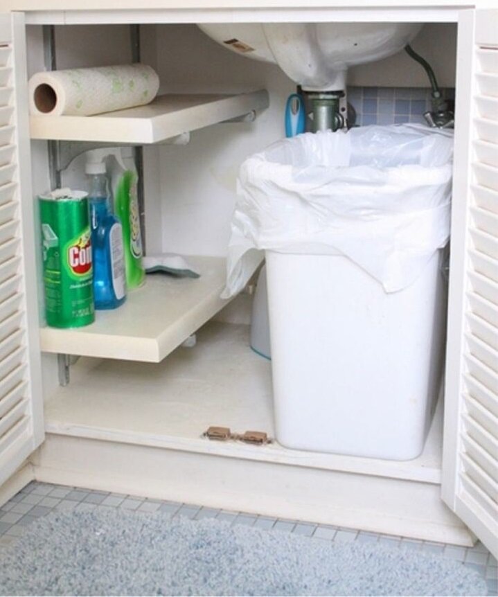 Маленькая кухня: как хранить всё необходимое в тумбе под раковиной