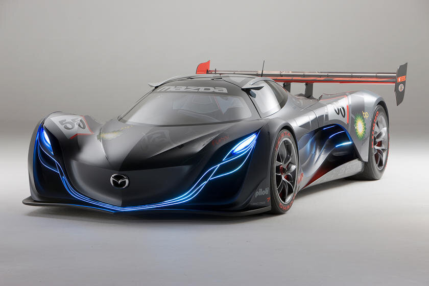 Furai - это полнофункциональный концепт-кар на базе прототипа Le Mans, построенный Mazda в 2007 году. Mazda всегда понимала, что передняя часть их автомобилей - лицо, и проектировала их фары, чтобы выразить. В этом случае злые наклонные фары попадают в демоническую улыбку гоночного автомобиля, который знает, что он разрушит трассу.