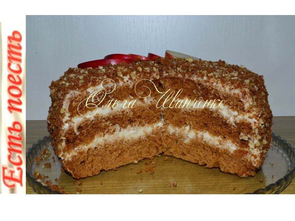 Тортик делается очень просто. Невероятно пышный и высокий бисквит с медовым ароматом отлично дополняет заварной яблочный крем. Хотя сюда подойдет любой крем, даже просто сметанный. Бисквит можно приготовить заранее, дать полностью остыть, обернуть в пищевую пленку и хранить несколько дней в холодильнике, затем собрать тортик. Подробнее смотрите в видеоролике. Ингредиенты для бисквита: В небольшую кастрюльку положить мёд и соду. Постоянно помешивая, на медленном огне нагреть(не кипятить!), до получения светлой пышной массы. Яйца комнатной температуры хорошо взбить с сахаром как на бисквит(взбивать 8-10 минут). Во взбитые яйца добавить остывший мёд, аккуратно размешать лопаткой движениями снизу вверх. В несколько приемов добавить муку, также размешивая лопаткой. На дно чаши мультиварки положить круг, вырезанный из пергамента, смазав его маслом сверху и снизу. Бока чаши смазывать не нужно. Вылить тесто, поставить чашу в мультиварку на режим выпечки на 1 час, ориентируйтесь по своей
