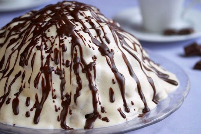- 3 Основу пропитать сиропом от ананасов, выложить на него фруктовую смесь с кусочками бисквита, разровнять с небольшим нажимом ложкой. Залить верх торта «Дон Панчо» остатками крема, убрать в холодильник. Растопить удобным способом шоколад, перемешать с маслом, полить полосами тортик, дать схватиться.