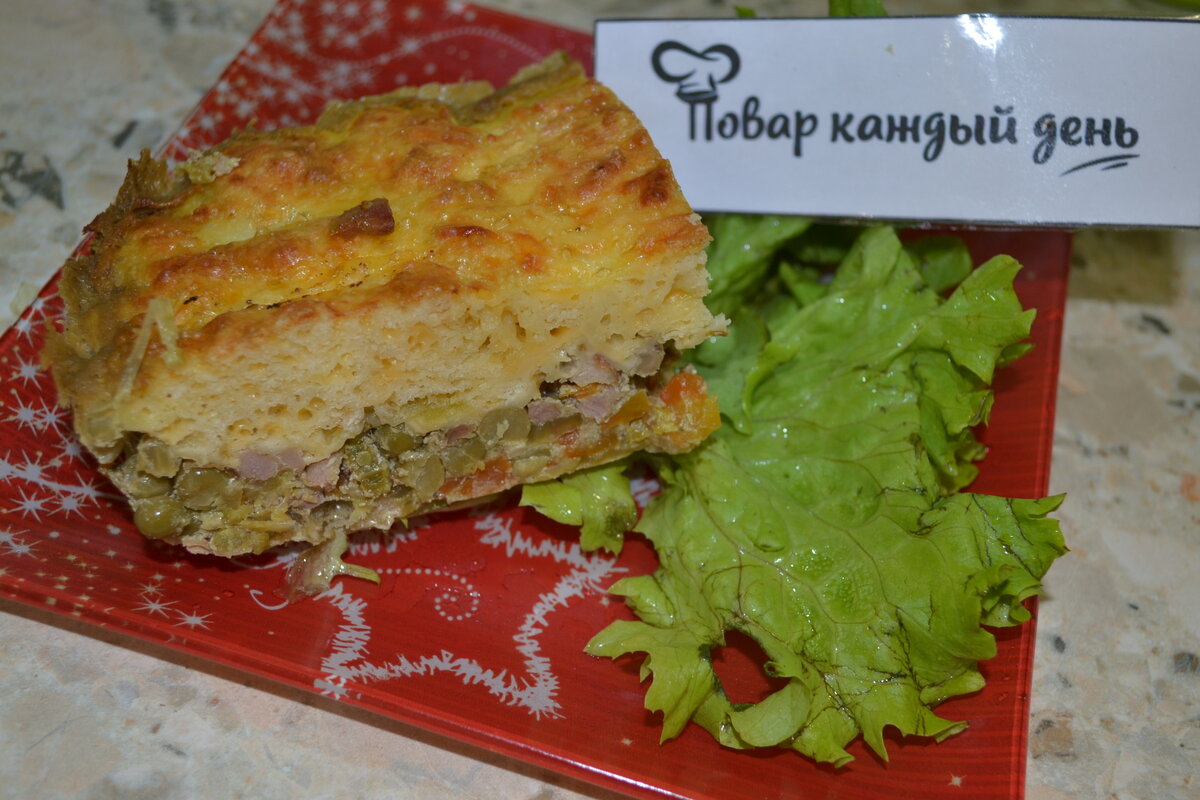 Здравствуйте мои любимые, сегодня рецепт для любителей пирогов. В общем, что рассказывать, давайте же начнём готовить! Вот необходимые продукты. Копчёную курицу можно взять любую. И грудину, и филе, и окорок. Я выбрала голень. Из сырой курицы нам необходимо сварить 0,5 литра бульона. Поэтому, самым первым делом заливаем бедро водой и ставим варить бульон. Овощи чистим, моем, измельчаем. На сковороде разогреваем сливочное масло. Обжариваем овощи на небольшом огне примерно 7 минут. Тем временем измельчаем мясо копченой курицы. Теперь добавляем к овощам травы и соль. Тушим 5 минут. Пока овощи тушатся натираем сыр на крупной тёрке. Через 5 минут как овощи протушатся, добавляем сметану и тушим ещё 2 минуты. К сыру добавляем 2 яйца и перемешиваем. К овощам всыпаем мясо и горох и опять тушим 2 минуты и снимаем с огня. Вот в промежутках между добавлением к начинке ингредиентов мы практически закончили приготовление теста. К сыру с яйцами всыпаем муку и хорошо замешиваем руками, пока тес