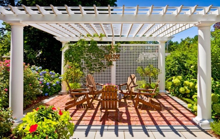 На даче спрятаться от зноя можно под деревом, внутри беседки или перголы. Последняя – самый практичный вариант, т.к. тематическая конструкция не требует для своего возведения много расходных материалов, а в готовом состоянии служит надежным укрытием. Особенности перголы Если беседка бывает летней и зимней, то пергола подходит лишь для летнего отдыха. Однако соответствующая сезонность не уменьшает спрос на тематическую конструкцию. Ведь дачник в погоне за удобством и экономией всегда рад следующим особенностям: Вот и получается, что пергола – совсем не бесполезная дачная конструкция. Для ее строительства используется преимущественно цельный деревянный брус. Причем брус идет с разным сечением (несущим балкам – с большим сечением, накладным рейкам – с малым). Лучшим украшением перголы являются вьющиеся растения. При этом флора должна цвести или плодоносить. Однако не стоит спешить сажать рядом с тематической конструкцией виноград или лимонник. Дело в том, что эти взрослые растения оказыва