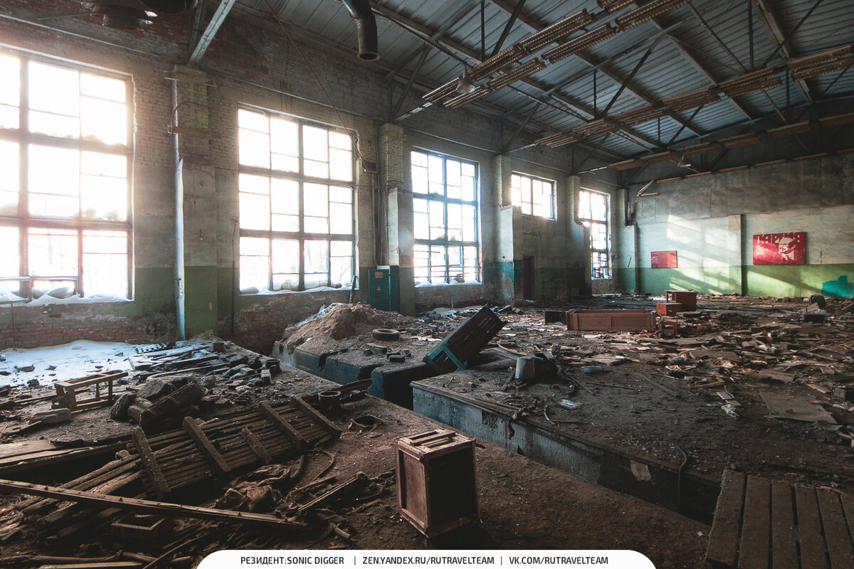 Вот уже почти сотня лет прошла как слияние «механического завода» имени Смирнова и фабрики имени Зиновьева в 1925 году образовало знаменитый на весь СССР «СибЗавода». Завод просуществовал все Советские Годы, пережил «перестройку» и «девяностые» и всё было у завода хорошо пока в 2007 году сюда не пришёл очередной амбициозный застройщик жилья из Москвы ООО «Траст-Инвест»… Собственно, что стало с заводом после того как территория завода отошла новым собственникам вы и сами можете наблюдать на наших фотографиях. С дальней стены на всё это безобразие взирает товарищ Ленин и его фраза «Партия — Ум, Честь и Совесть нашей эпохи!» хоть и не потеряла актуальности, но вот её смысл изменился прямо противоположный — иронично-саркастический. Какая Партия, такая Честь и Совесть… Как сказал один умный человек в новейшей истории России было две беды: тотальная национализация и повальная приватизация. Из крайности в крайность так сказать... Выпиленные «под ноль» производственные линии и цеха в руинах. С