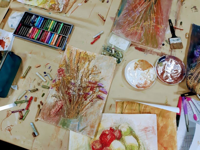 Фото в тексте - с прошлого моего мастер-класса по масляной пастели на авторских грунтах в Простой Школе , новый - уже 5 января, всё о нём подробно - на страничке мероприятия.