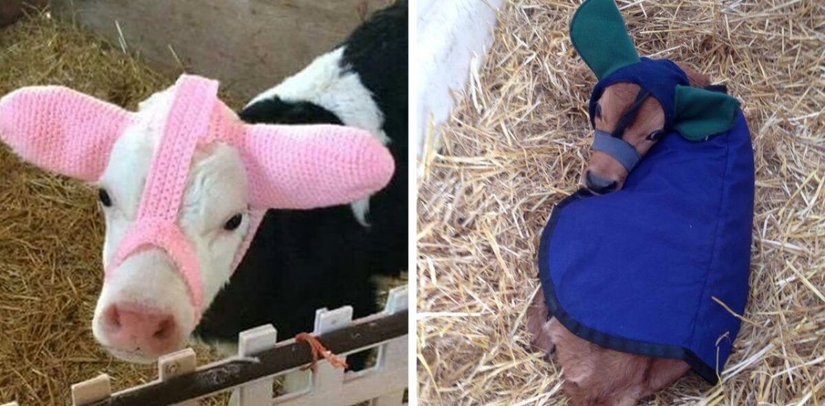Возможно, авторы изобретения просто любят вязать, и поскольку на современных детей вязаные вещи надеть всё сложнее, они успешно отыгрались на телятах.