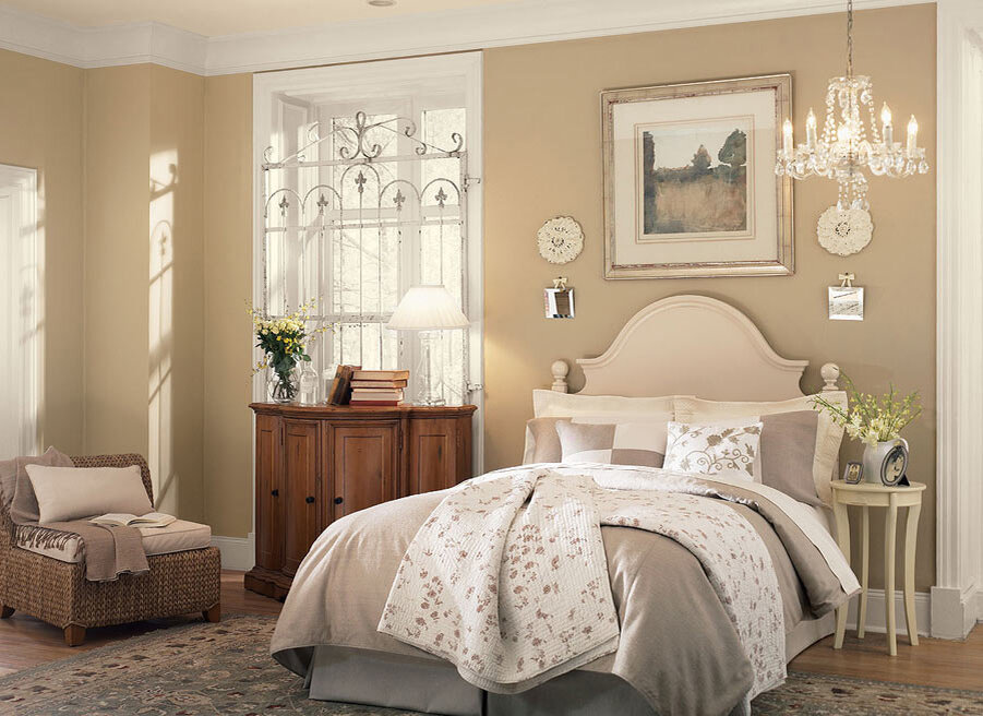 В спальне уместно сочетать бежевый с цветами слоновой кости, верблюжьей шерсти, тана, песка, в гостиной – с экрю, кремовым, бисквитным, опаловым, в кухне ‐ с карамельным.