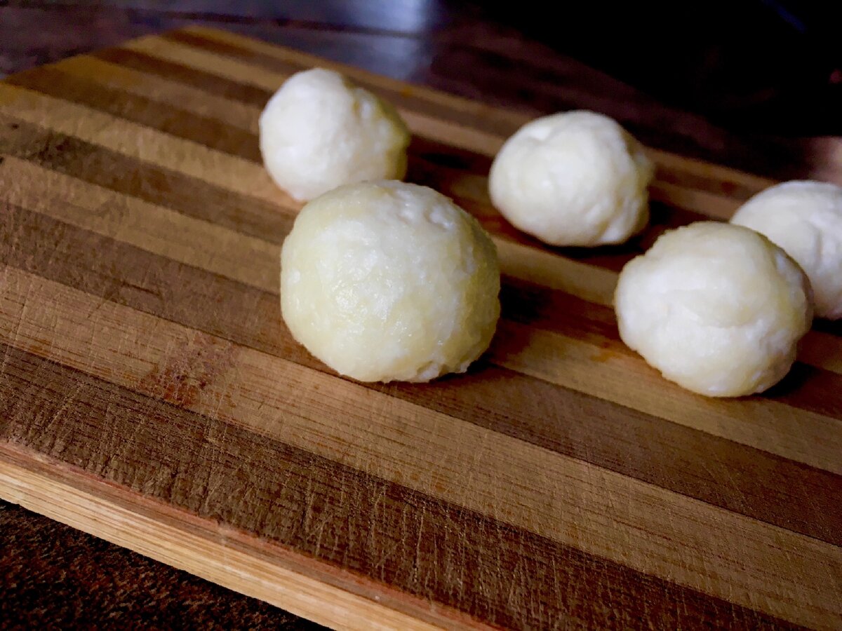 Берём следущий кусочек сырной массы, также его плавим и формируем шарики.