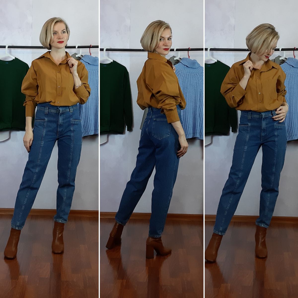 Джинсы с завышенной талией отлично вытягивают фигуру, а свободный крой помогает скрыть недостатки в области бедер. Они идеально сочетаются с заправленной рубашкой, блузой с объемными рукавами или кроп-топом.