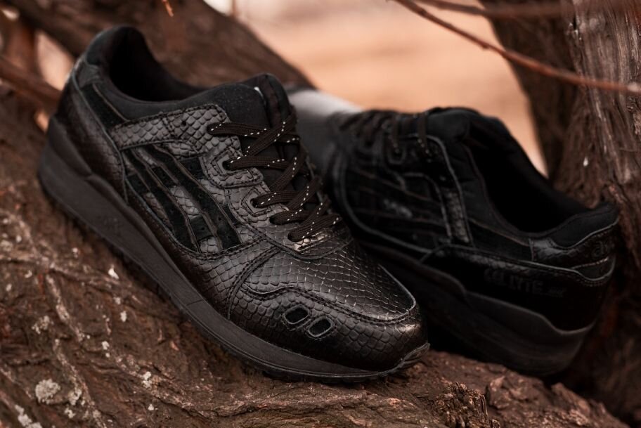 Модель Asics "Black Mamba" является результатом вдохновения змеями. Она вышла в рамках обзора Snake Bite Pack. Данный релиз отличается тем, что текстура покрывающая поверхность кроссовок выполнена в виде змеиных чешуек. Для создания узора использовался лазер. Кроссовки имеют также полоски с дополнительным оттенком. Они являются отличной темной альтернативой выпущенным в этом сезоне большим пестрым моделям. На нашем сайте вам доступны разные расцветки. Для обзора выбор был остановлен на легендарной модели классических беговых кроссовок, которые были созданы в 1990 году. Gel-Lyte III были первыми кроссовками ASICS, для производства которых была использована структура раздвоенного язычка Split Tongue. Благодаря этому удалось сохранить тему обзора, так как они четко передают "змеиный" характер. Эта модель кроссовок отлично подойдет для ежедневного использования, а их эффектная текстура точно не останется без внимания.