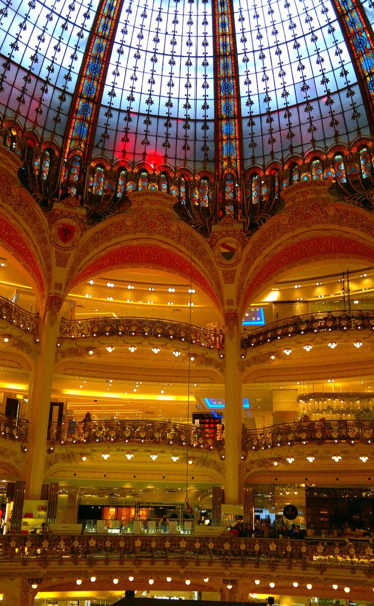 Флагман сети - парижский аналог ГУМа — пассаж со стеклянным куполом Жака Грюбера и декором в стиле модерн, который был открыт в 1912 году в Париже, в здании на бульваре Осман напротив Гранд-Опера. Другие статьи: https://zen.yandex.ru/id/5d67b831e6cb9b00add00614