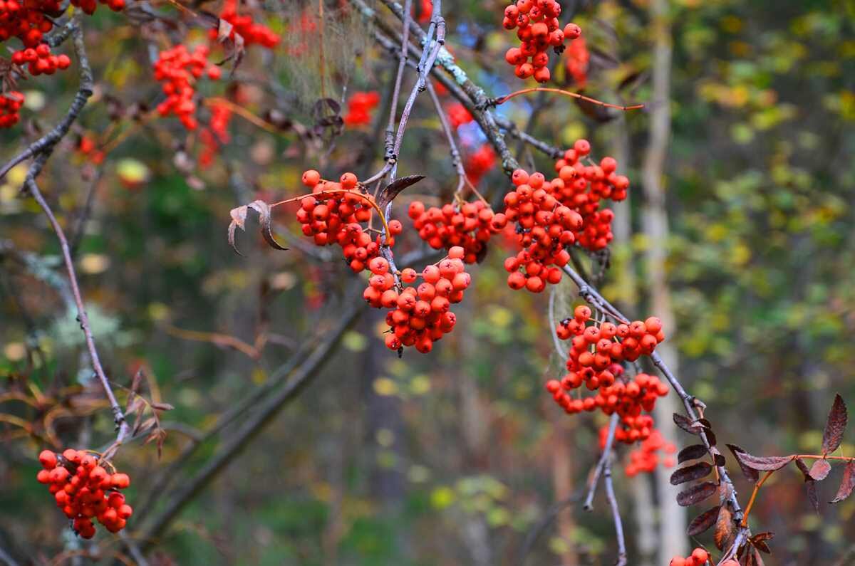 В ненастные дни на фоне темного полога леса особенно выделяется рябина, заявляя о себе ярким нарядом красных ягод. Её багряные гроздья могут радовать глаз долгое время, если только не налетят стайки дроздов-рябинников, свиристелей и не сорвут этой большой красоты коралловое ожерелье тайги. Золотой праздник осени на Вишерском Урале крайне недолог. Северные ветры и холода коварны и хитры: могут в одночасье слизать с деревьев позолоту, и только кисти рябин останутся висеть на голых ветках до сильных морозов. А нынче в заповеднике настоящий рябиновый год. Последним урожайным был 2016-й. Кстати, в «Вишерском» растут рябины двух разновидностей. Самая заметная, самая многочисленная и самая красивая называется у ботаников прозаически - рябина обыкновенная (Sórbus aucupária). Другой вид - рябина сибирская (Sorbus sibirica). Для многих животных рябина является «лесным хлебом». Очень любят ее свиристели. Эти птицы настоящие красавцы: дымчато-розовые, с черным, белым и желтым узором на перьях, сп