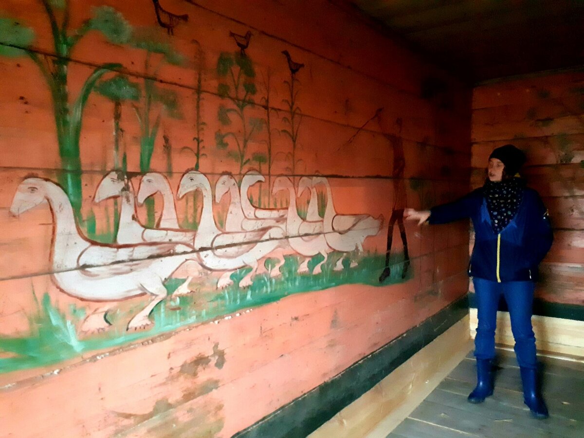 – Я видела расписные дома на русском севере, в Сибири, на Урале, в Забайкалье. Они сохранились несмотря на то, что все было сделано и еще делается для того, чтобы они исчезли — начиная от укрупнения деревень до забивания домов сайдингом. “Дом со львом” отличается большой площадью живописи — 80 квадратных метров, отличной сохранностью рисунков. Примечательно и то, что художник изобразил не просто цветочки, как бывало часто, а именно фигуры. Он создал определенный сюжет, который мы разгадываем, и возможно, он был своего рода бунтарем — очень уж непохожи его сюжеты на традиционные – отмечает Юлия.