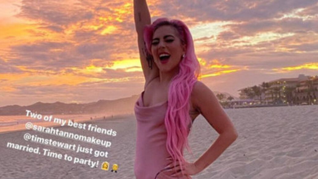 Подружка невесты: Леди Гага с розовыми волосами на свадьбе подруги