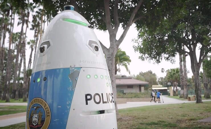 В США автономные роботы Knightscope, предназначенные для автоматизированной слежки, получили новый функционал, о котором стало известно журналистам OneZero. Робототехническая компания Knightscope с 2015 года сдает в аренду своих роботов полиции и частным организациям, таким как больницы и казино. Роботы-полицейские при патрулировании территории собирают большое количество данных, используя технологию распознавания лиц, номерных знаков проезжающих и припаркованных автомобилей. Кроме того, роботы научились наблюдать за окружающими людьми с помощью, отслеживания сигналов с их смартфонов. Журналистам OneZero удалось получить доступ к засекреченной презентации Knightscope, в которой указываются все возможности роботов-полицейских. Данная презентация была предоставлена властям города Хантингтон-Парк. Согласно документам, город подписал контракт на сумму в $240 000 за аренду робота Knightscope на 3 года в ноябре 2018 года. На слайдах презентации подробно рассказывается о програ