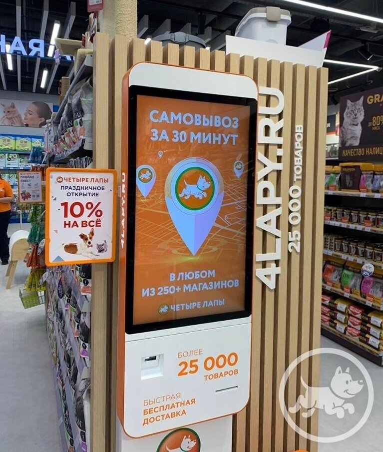 Сеть «Четыре лапы» открыла зооцентр с киосками для онлайн-заказов и кассами самообслуживания