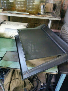 На второй день мне предоставили персональный шкаф из лихих 90Х) Это даже очень, такой, даже не чего с картинками;) НО им тут не место )) Я ранее уже писал про то что, начал работу с маленьких электрощитков, вот что в общем получилось. см. фото ) Ниже на фото другая дверца, где все мы привыкли видеть и наблюдать счетчик. Далее эти дверцы устанавливаются в рамы. И в целом после окончательной сборки и покраски на свет появляются всем уже знакомые электрощитки. Такой вот процесс в кратце.