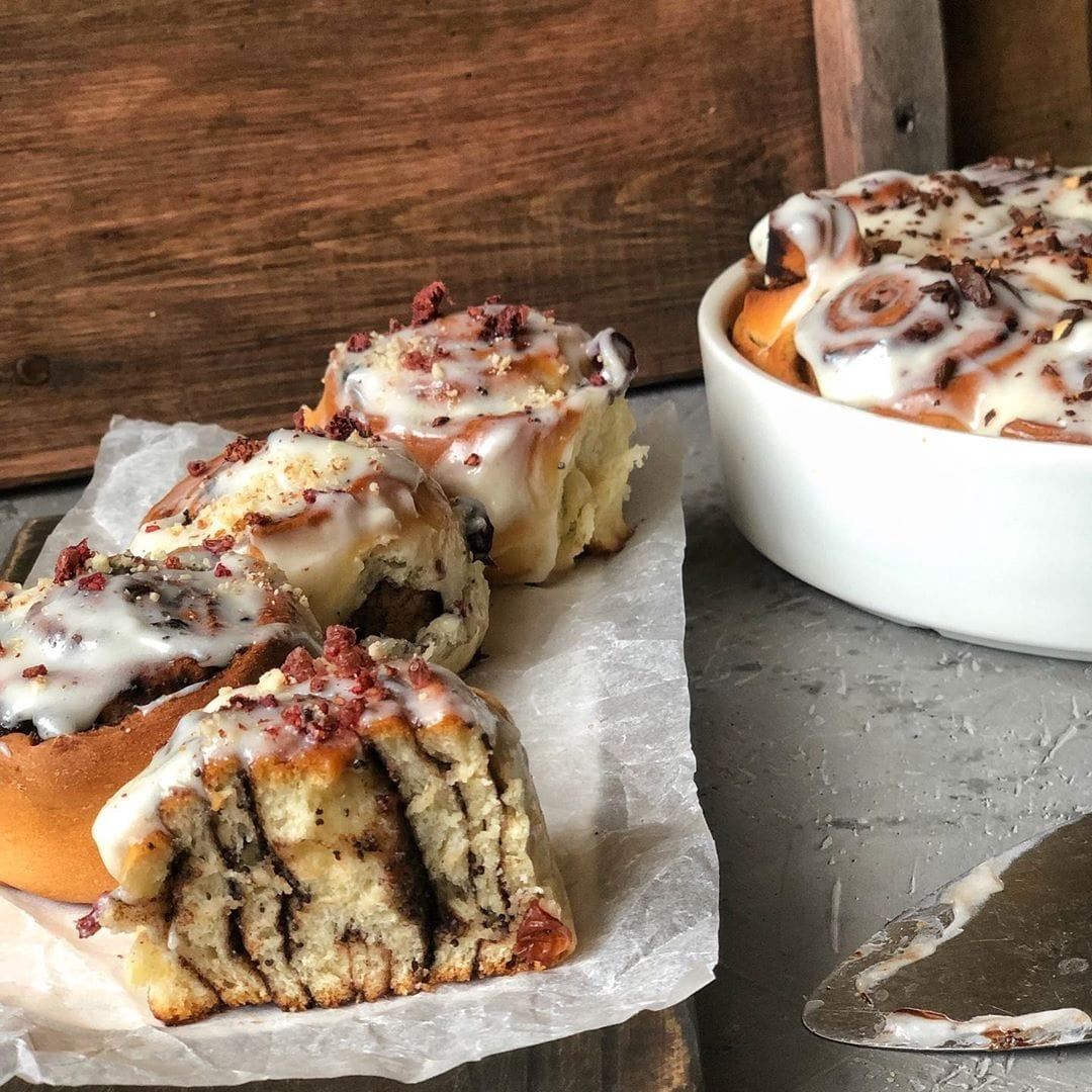 ⠀ Даже самые активные сторонники полезного питания не устоят перед манящим и сногсшибательным ароматом свежеиспеченной булочки синнабон. Синнабоны могут быть такими разными, но они всегда невероятно вкусные! Хотя бы один раз в жизни их обязательно нужно попробовать. А теперь вы сможете приготовить эти восхитительные коричные булочки у себя дома. Хотите? Тогда приступим. ⠀ Для приготовления булочек синнабон вам понадобятся самые обычные продукты. Благодаря этому вы сможете отведать неповторимое коричное лакомство уже сегодня. Итак, какие же ингредиенты нужно приготовить? Для теста: Сливочное масло 60г Молоко 100г Сахар 60г+1ст.л. Сухие дрожжи 7г Тёплая вода 100мл Яйцо 2шт Пшеничная мука 570г Соль 1 щепотка Для начинки: Коричневый сахар 150г Какао 30г Корица 2ст.л. Имбирь 1ст.л. Сливочное масло 60г Для сырного крема: Сливочный сыр 100г Сахарная пудра 200г Молоко 1ст.л. Коньяк (или бейлиз) 2ст.л. Для начала растапливаем сливочное масло вместе с молоком, солью и сахаром (60г). Полученную