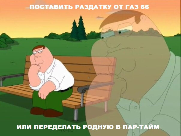 Читаю опыт Соболеводов, по установке РК от ГАЗ-66 и меня начинает смущать объем переделок. Фланцы хвостовиков. Траверса раздатки. Её вечно куда-то двигают, меняют длины карданов и наклоняют соседние агрегаты что бы выставить промежуточный вал между двумя коробками передач. Это, в свою очередь, влечет за собой изменение углов на основных валах и, соответствующие, нарушения аксиом теории карданных валов, проблем с вибрацией, износом и всем, из этого следующим. В общем я стал понимать, что работа предстоит не малая и так, сходу, я ее не сделаю. Решил, что пока буду дальше изучать опыт соболеводства, и искать раздаточную коробку от ГАЗ-66 с, хотя бы, удовлетворительном состоянии.