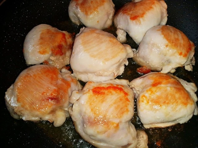 Сегодня у нас блюдо техасско-мексиканской кухни, для которого не нужны какие-то экзотические ингредиенты, готовящееся весьма быстро и не требующее продвинутых кулинарных навыков. Ингредиенты: Курица* — 800 гр Лук репчатый — 1 крупная луковица Резаные помидоры в собственном соку — 1 банка (400 гр) Кукуруза замороженная — 150 гр Молотый кориандр — 1 ч.л. Молотый чили** — 1-2 ч.л. Соль, перец — по вкусу Оливковое масло *Курятину лучше использовать в виде ее нижних конечностей — голени, бедра, окорочка. Я взял бедра без костей и кожи. **В принципе, если кто не дружит с чили, то можно его не использовать. Хотя это будет и не особо аутентично. 🙂 Разогреваем в сковороде масло и обжариваем курятину с двух сторон до появления румяной корочки (минут по 5 с каждой стороны). Курятину куда-нибудь перекладываем, а на сковороде обжариваем лук, нарезанный полукольцами. Через пару минут добавляем кориандр с чили и готовим еще минуты три. Добавляем все содержимое банки с помидорами и хорошенько перемеш