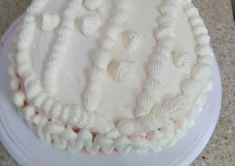Бисквитный тортик с клубничкой и кремом из творожного сыра.