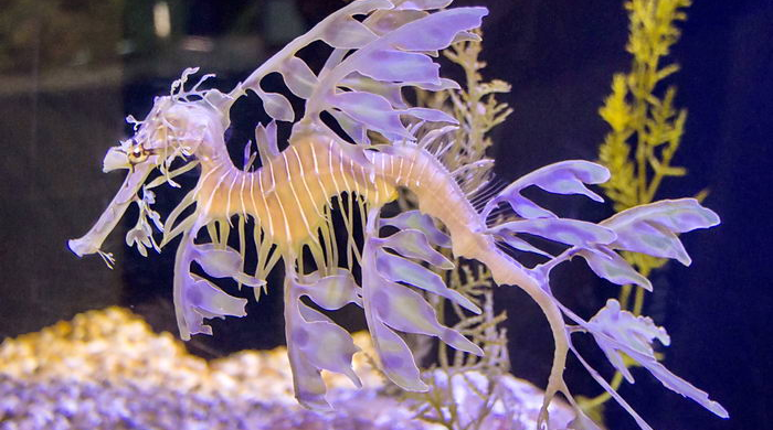 Лиственничный морской дракон, он же тряпичник, он же морской пегас - крошечная рыбка размером от 20 до 40 см, родственник морского конька. Обитает только у побережья Австралии и в настоящий момент считается исчезающим видом. Морским драконом ее называют из-за внешнего сходства с персонажем легенд и сказок, это сходство достигается благодаря фантастическому "оперению" рыбы. Малыш-дракон весь покрыт особыми наростами, напоминающими водоросли. "Водоросли" колышутся на ходу, будто тряпка на ветру, отсюда и второе название - тряпичник. Лиственничный дракон близкий родственник морского конька, хотя у них и есть ряд существенных различий. Во-первых, тряпичник больше. Во-вторых, плавает горизонтально, тогда как морские коньки плавают вертикально. В-третьих, морской пегас имеет не такой сильный хвост, и не может им цепляться за водоросли, как это делает морской конёк. Это, кстати, одна из причин гибели пегасов, поскольку во время штормов и морских волнений их часто выбрасывает на берег. Не смо