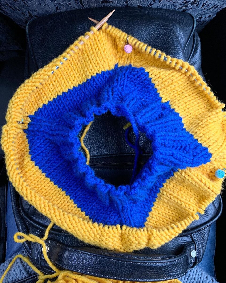 Вот до позднеййййй ночи ковырялись, осваивали и поднимали петли! С утра взял с собой в дорогу) хочу быстро связать этот свитерок! А то я так всхуднул, что мой текущий совсем висит) он очень классный, но висит... К большой бороде - большой свитер, к маленькой - маленький)))