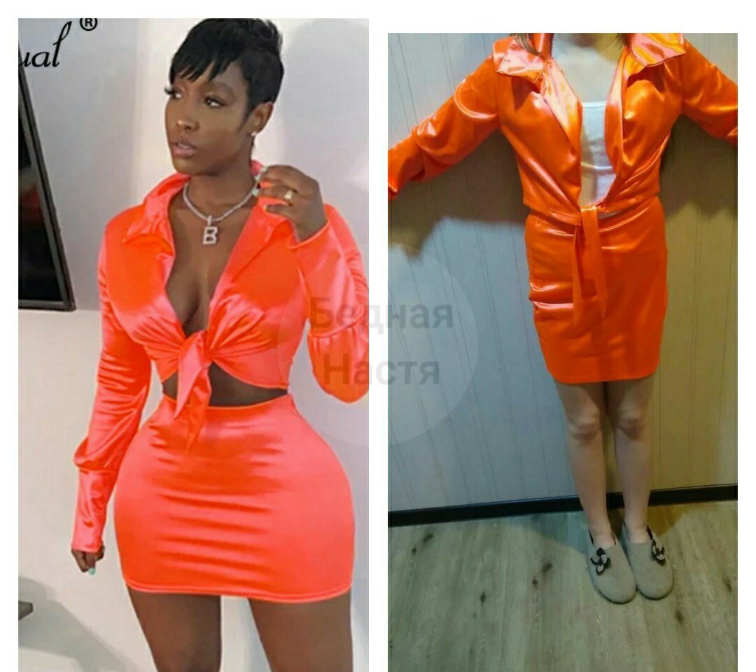 Всем привет! Лично я не очень понимаю моду на сестер Кардашьян и их одежду. Обычно это очень обтягивающие вещи ярких цветов со странными вырезами, перьями, сетками и т.д. Но тем не менее этот стиль пользуется спросом среди пользователей инстаграм, а соответственно - китайцы уже нашили приличное количество похожей одежды. Смотрим, что из этого получилось. Все фото взяты из отзывов и со страниц продавцов на сайте aliexpress.com Сбитый летчик - так бы я назвала этот костюм. Не знаю, откуда такие ассоциации. Здесь мы наблюдаем сочетание 3 отвратительных параметров: Похоже, что от этих "крылышек" по бокам брюк в ужасе даже собака хозяйки. Вон она спряталась на кровати, одни глаза видны, полные ужаса и негодования 😁Как сценический костюм ещё ладно, пойдет, для определенных исполнителей. Но носить это на повседневку, зачем? Демонстрировать цвет нижнего белья? Пляжный вариант? Если только в качестве антицеллюлитного обертывания, т.к. кожа на солнце в такой синтетике просто начнет кричать: "SO