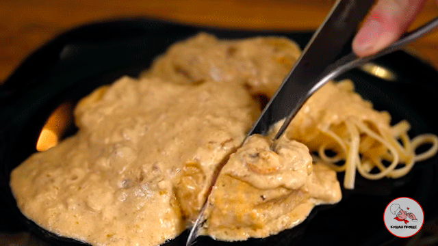 Друзья привет! Я люблю готовить не прикладывая каких либо усилий и уж точно много времени! Всё что по душе, так это вкусно поесть и не тратить сил на приготовление. Если ты такой же, то этот рецепт точно для тебя! Ну тогда поехали. 1. Берем филе грудки и раздавливаем её разделочной доской. Делай филешку плоской! Солим, перчим. Если у вас есть любимая приправа, то пожалуйста используйте, никто вам не запрещает. Главное не переусердствуйте, потому что у нас будет очень вкусный соус. 2. Я предпочитаю жарить на оливковом масле, но если у вас его нет, жарьте на подсолнечном. Выкладываем наши филе грудки на уже раскаленную сковородку. Обжариваем каждую сторону по четыре минутки. 3. Теперь нужно завернуть обжаренную курочку в фольгу. Таким образом тепло дойдёт внутрь, температура сохранится пока мы готовим соус. 4. Ну что, приступим к соусу? Берём пару луковиц, пол головки чеснока, мелко всё это нарезаем. Аккуратней с пальцами! Возьмем шампиньоны и тонко-тонко нарежем. Обжариваем лучок с чесн