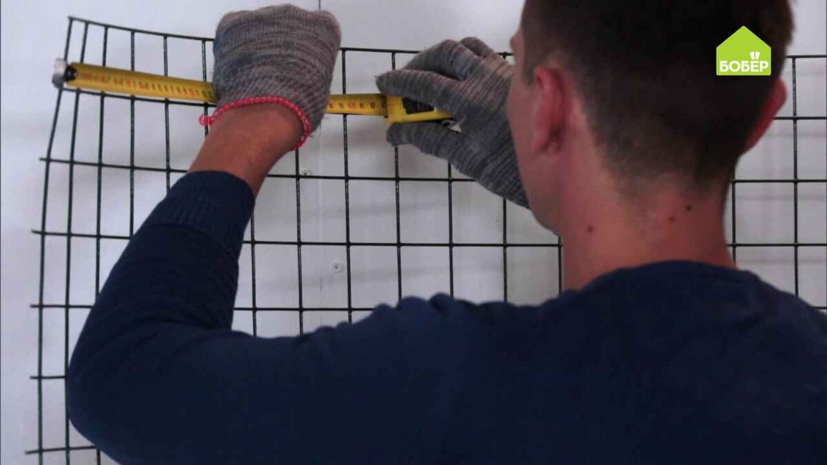 Для полочек разметьте 6 прямоугольников размером 40х45 см. Отрежьте сетку с запасом, чтобы можно было прикрепить полочки к стенкам шкафа.