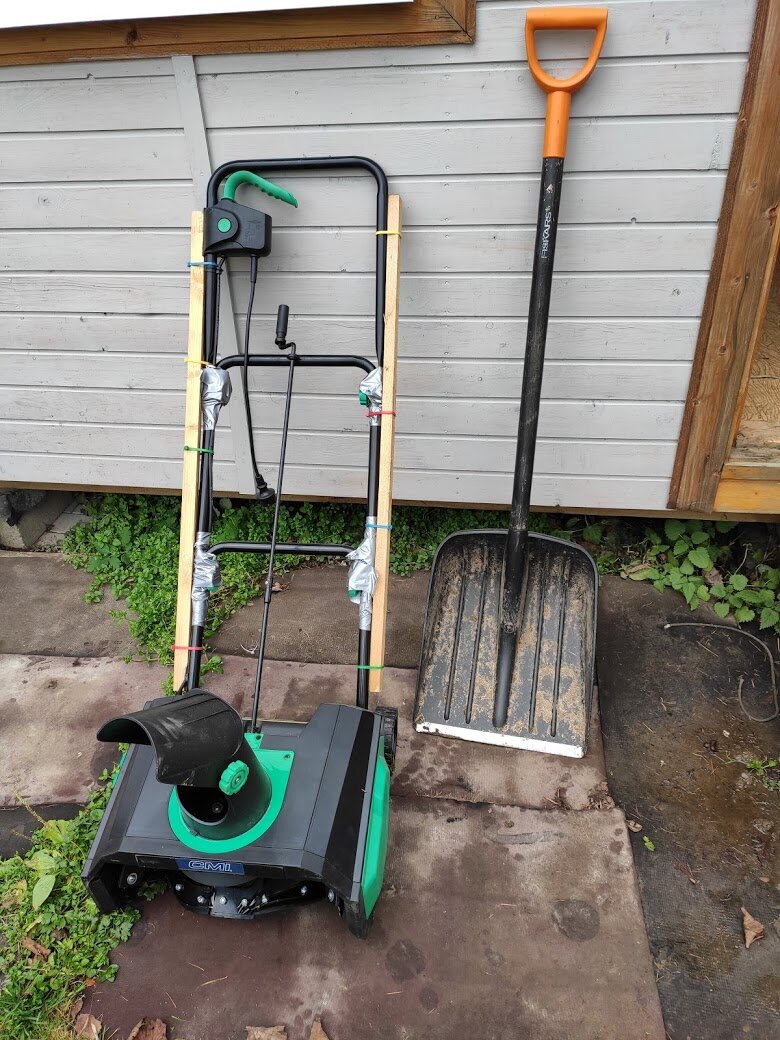 Данные материал наверное вызовет усмешку у жителей Сибири и Дальнего Востока нашей страны, но тем не менее в наших краях такая техника вполне работает. В этом году у меня будет 6 сезон круглогодичного посещения дачи. Это значит, что нужно чистить снег на даче. И вот в преддверии начала снегоуборочного сезона решено было проверить свой парк техники. А парк собственно состоит из 2 единиц :) 1. Это отличная снегоуборочная лопата Фискарс! Очень удобная и функциональная. Доволен ей на 100%. Легкая и крепкая! Я ей даже летом умудряюсь найти применение. Например, когда надо утилизировать яблоки. 2. Это дешевый китайский электрический снегоуборщик. Работает у меня он с января 2015 г. Покупал я его за 3700 в магазине Оби. Думал проработает у меня пару сезонов и ладно. Но данный агрегат и не думает ломаться и последний сезон отработал на ура! Однако со временем, он как и люди стал слаб на опорно-двигательный аппарат и пришлось ему вставить титановые деревянные пластины накладки по бокам, та