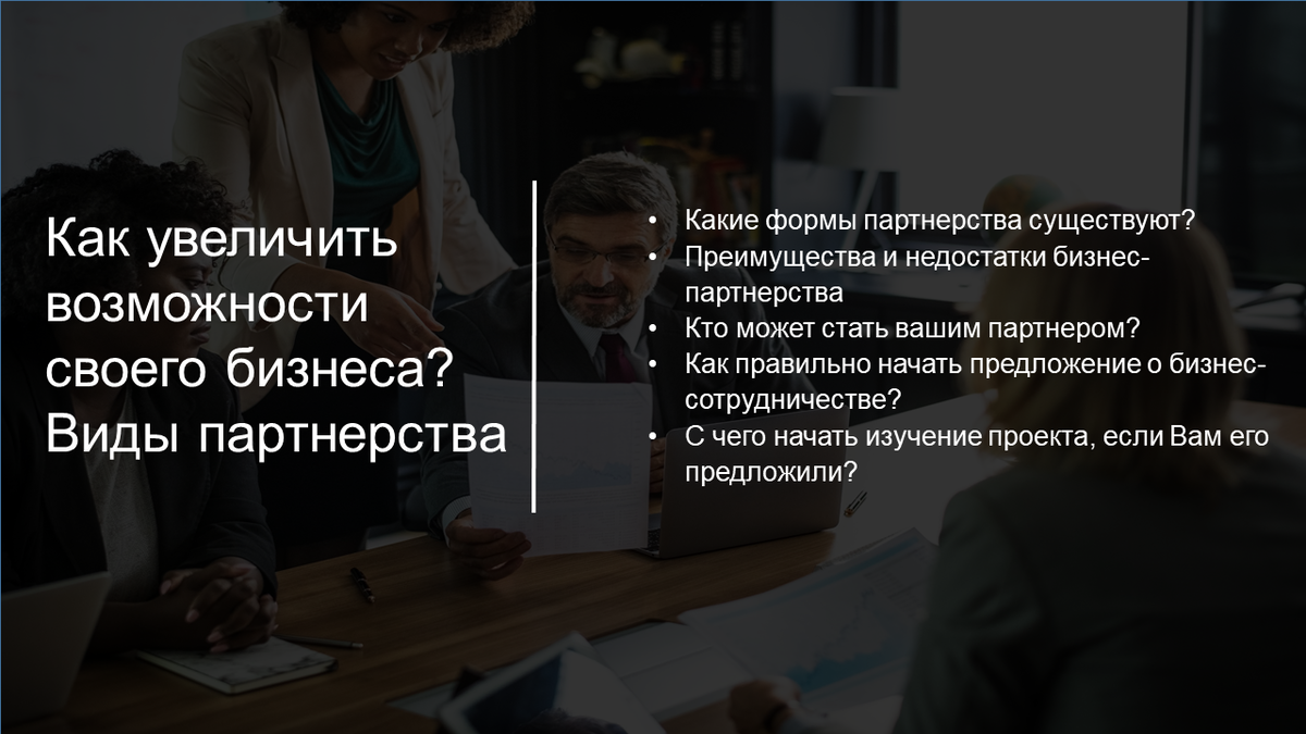 - Более качественное управление бизнеса за счет синергии знаний и опыта партнеров;