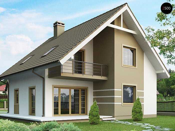 Проект Z62 представляет собой стильный дом с мансардой, экономичный в строительстве и эксплуатации. Несмотря на простую форму и двускатную крышу Z62 выглядит современно и привлекательно благодаря красивому балкону над террасой, лаконичным элементам отделки фасадов и благородной цветовой гамме. Преимущества проекта Z62: